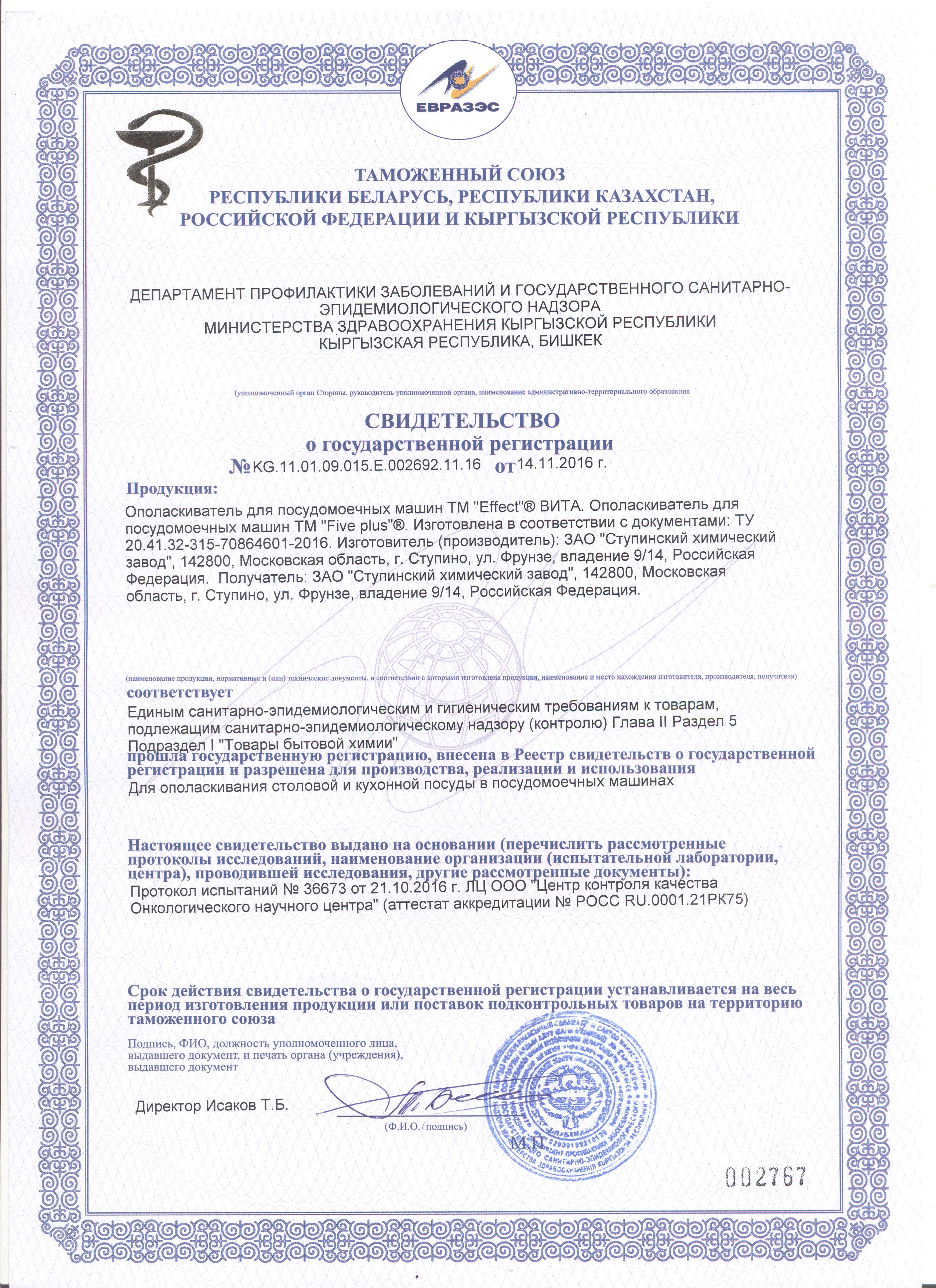 Производитель АО "Ступинский химический завод", 142800, Россия, Московская область, г. Ступино, ул.Фрунзе, влад. 9/14